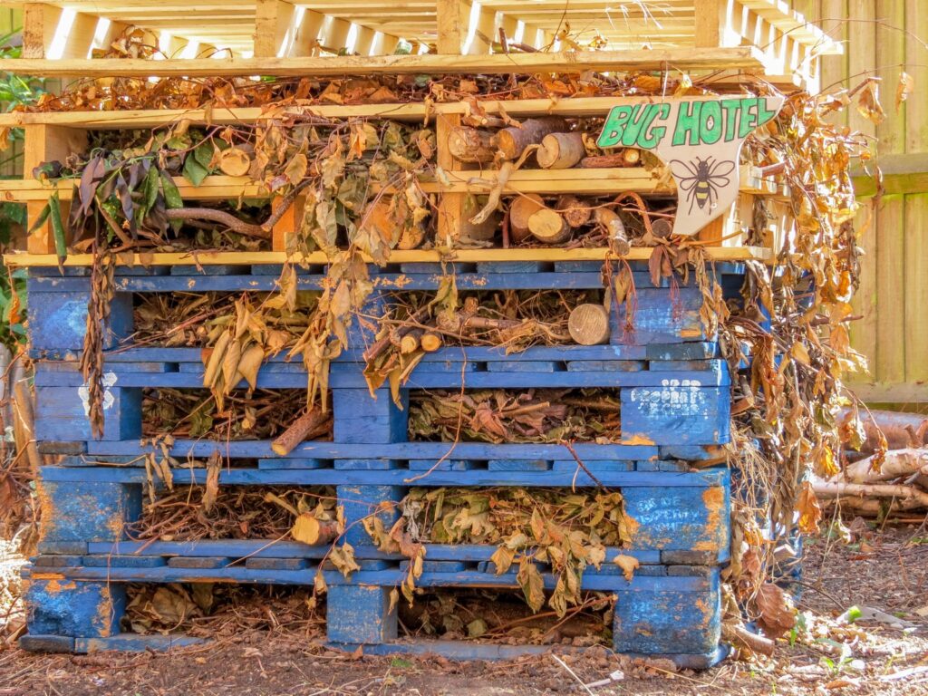 One of my neighbour’s children has a ‘bug hotel’ in their front forecourt. Just some old bits of wood stacked up but it also has a little welcome sign which I love. So simple to do but I’m sure it’s a little oasis for the local insect population.